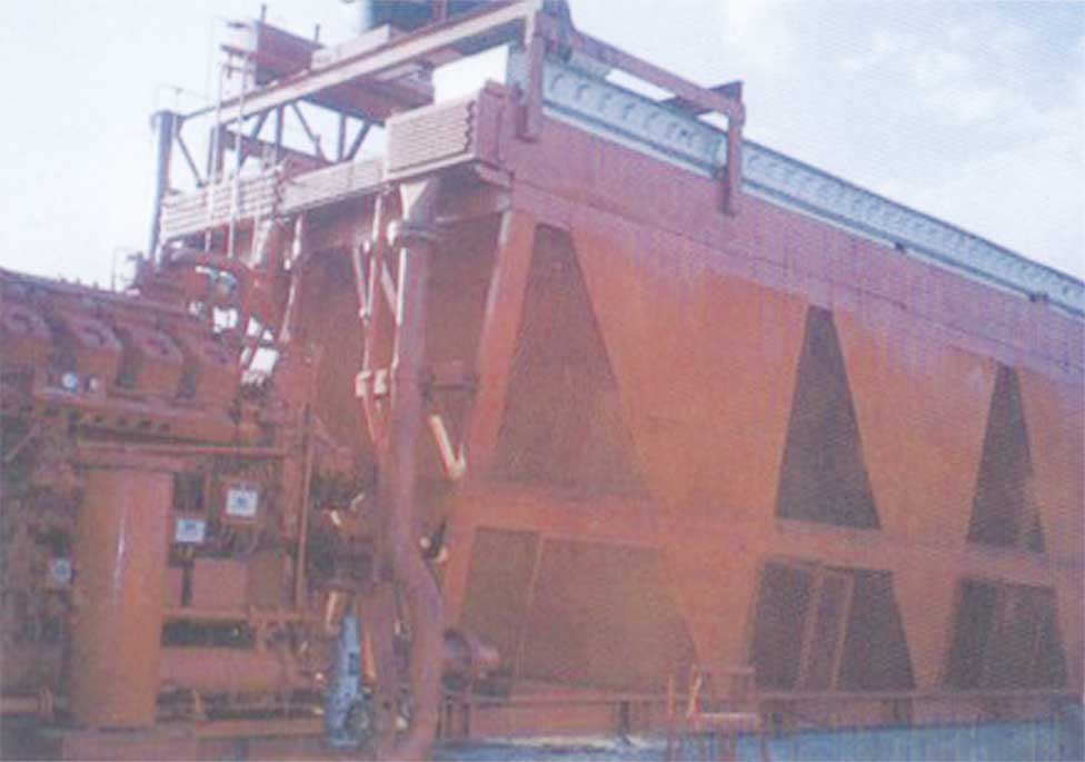 熱燒結(jié)礦從燒結(jié)機(jī)尾部落下經(jīng)過單輥破碎振動(dòng)篩篩分后,落到冷卻機(jī)傳送帶上,在冷卻機(jī)上布置有數(shù)個(gè)冷卻風(fēng)罩,風(fēng)罩內(nèi)裝有軸流風(fēng)機(jī)(吸風(fēng)式),使冷卻風(fēng)通過礦料層,能過礦料層后的風(fēng)溫在第一風(fēng)罩內(nèi)一般可達(dá)250~400℃,第二風(fēng)罩內(nèi)風(fēng)溫一般為200℃左右。冷卻礦料的另一種形式是鼓風(fēng)冷卻,即風(fēng)機(jī)在礦料層底部鼓風(fēng),通過礦層后進(jìn)入風(fēng)罩排空。